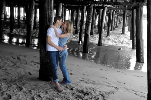 After changing out of the more “formal” attire this couple wore in the first portion of their session, we went to the Santa Monica pier to create some casual “California Style” images. The seagulls cooperated to provide background interest.