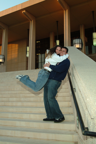 These future newlyweds wanted to have their engagement photos taken at Cal State Northridge, where they met. This fun image was taken on the steps of CSUN’s Oviott Library.